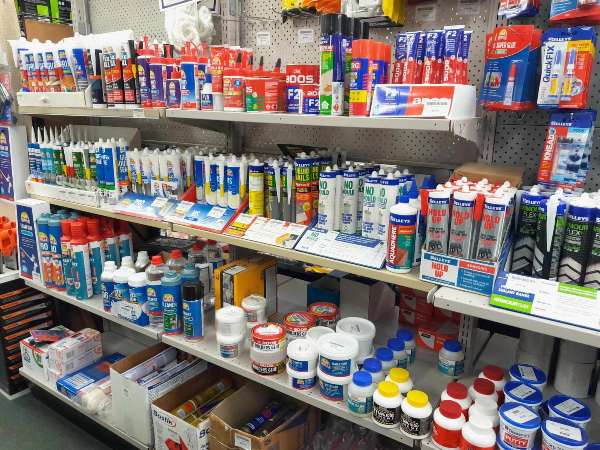 We have a large range of leading brand adhesives, sealants, silicone and putty in store.