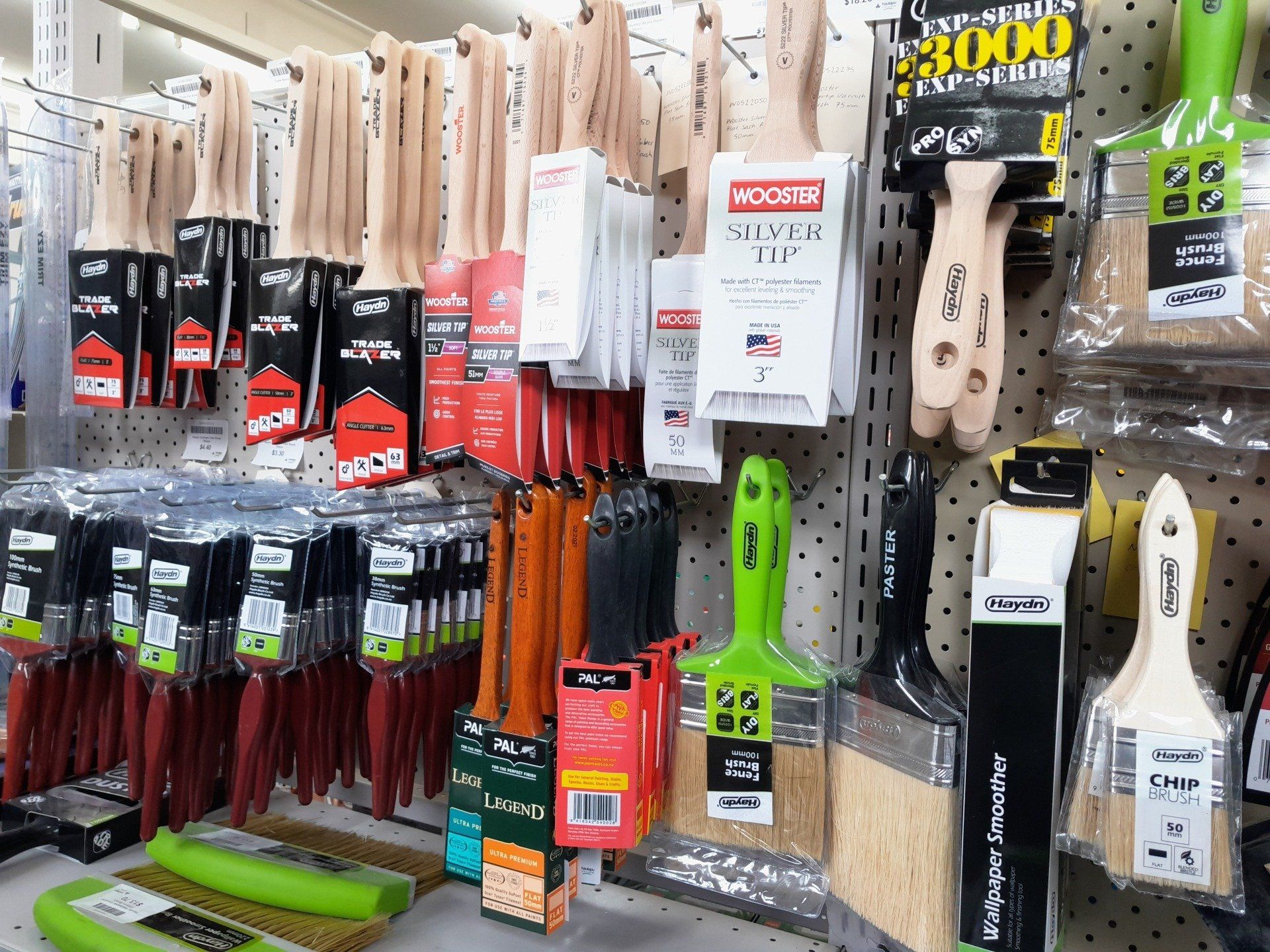 Right along side our paint section is everything you need to get your paint job done - paint brushes, roller handles and sleeves, paint trays, scrapers, sandpapers, putty knives etc.